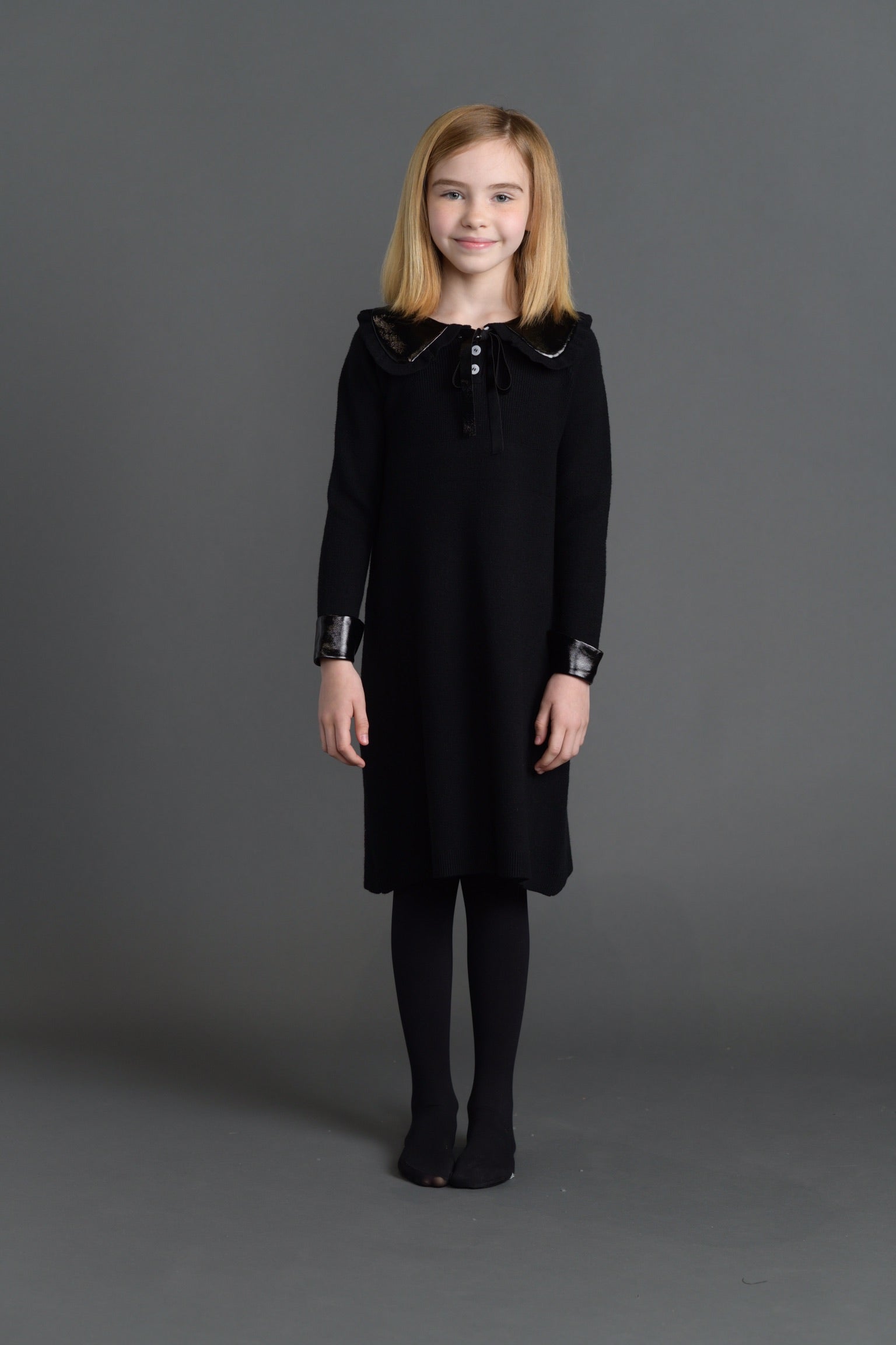 Black Dress with Leather Collar and Ties