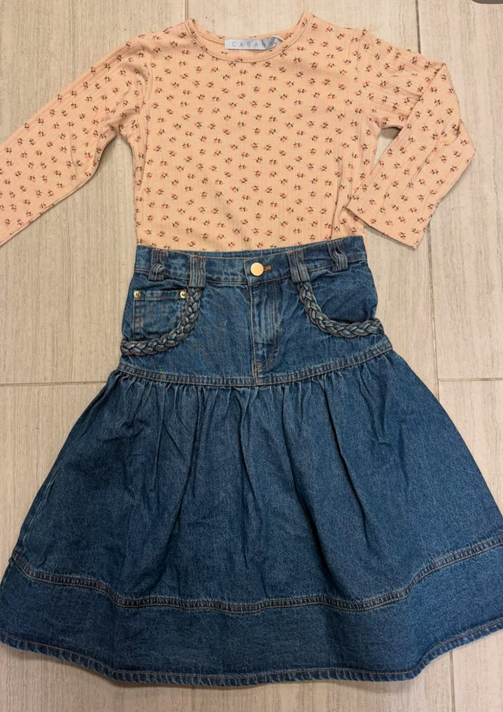Introducing our BRAIDED POCKET DETAIL SKIRT - a luxurious denim knee length skirt featuring a stunning braided pocket decal. Elevate your style with this sophisticated and exclusive piece, adding a touch of art and fashion to your wardrobe.