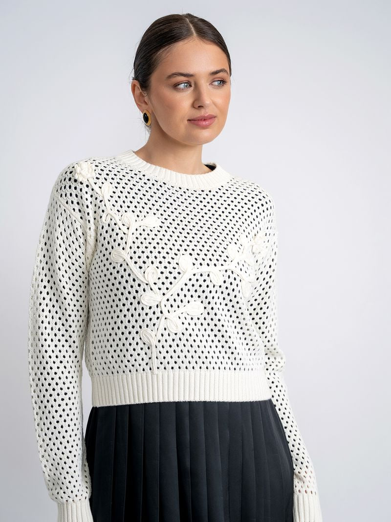 This crochet embroidered sweater combines delicate floral embroidery with a cozy knit design, offering both comfort and style. Its intricate craftsmanship adds a charming, handmade touch to your wardrobe, making it perfect for layering on cooler days while keeping you looking effortlessly elegant.