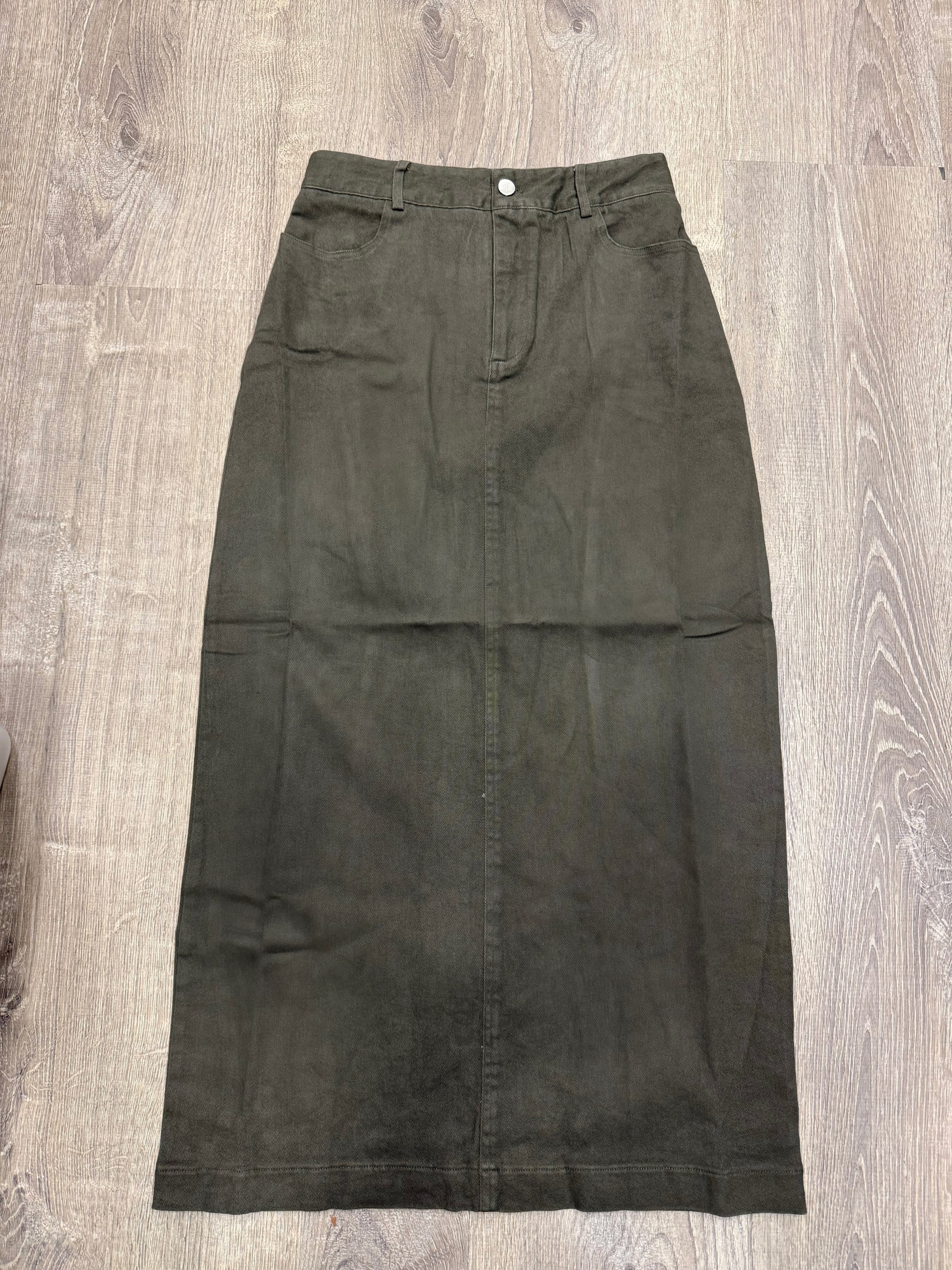 Step out in style with our Denim Straight Maxi Skirt, available in sleek black and earthy olive. Crafted with stretchy fabric, it offers comfort and a flattering fit that moves with you. Perfect for playful days or casual nights, this skirt pairs effortlessly with your favorite tops for a chic, laid-back look.
