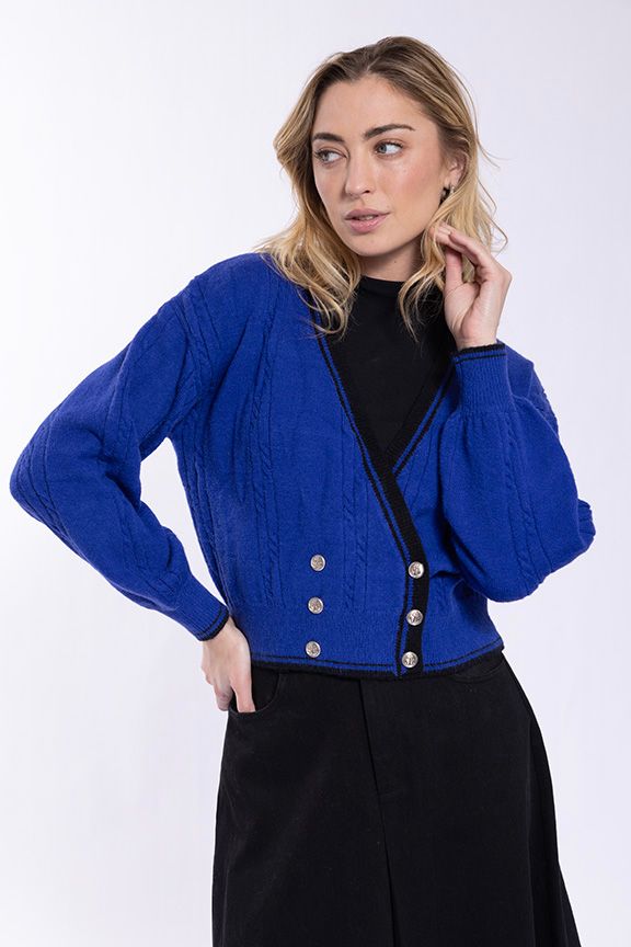 This elegant Conolt blue varsity cardigan features a refined double-breasted design with striking silver button closures, blending classic collegiate style with polished sophistication. Crafted to elevate your wardrobe, it offers a tailored fit that complements both casual and dressier looks effortlessly.