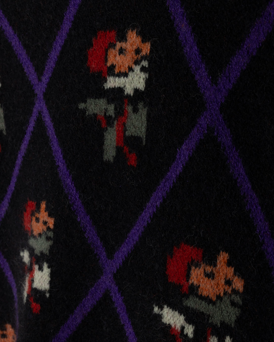 Bring a burst of garden charm to your wardrobe with this playful black sweater. Featuring a lively floral print intertwined with a classic argyle pattern, it’s the perfect mix of whimsy and style. Cozy and eye-catching, this sweater adds a fun twist to any outfit while keeping you comfortably warm.