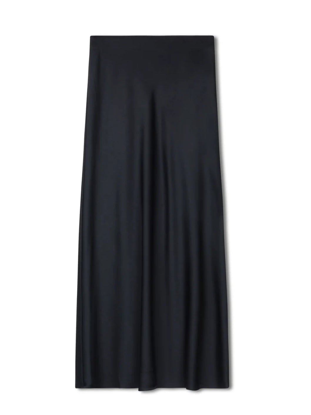 The POINT A-LINE SLIP SKIRT features a comfortable elastic waistband for a tailored fit that moves with you. Its sleek A-line silhouette offers a flattering shape, perfect for layering or wearing solo. Crafted for versatility and style, this skirt combines ease and elegance seamlessly.