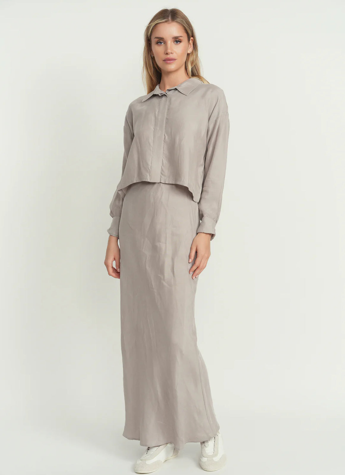 This luxurious maxi skirt boasts a minimalist design with a gently elasticized waistband for a comfortable and effortless fit. The soft, brushed fabric feels indulgently smooth against your skin. Comes in Dusty Blue, Stone, Palm Leaves and black. Perfect for any occasion, this straight skirt is a timeless addition to your sophisticated wardrobe.