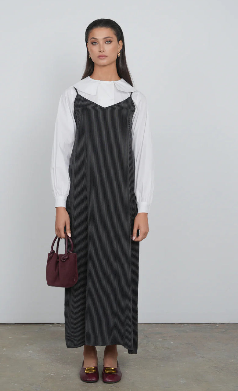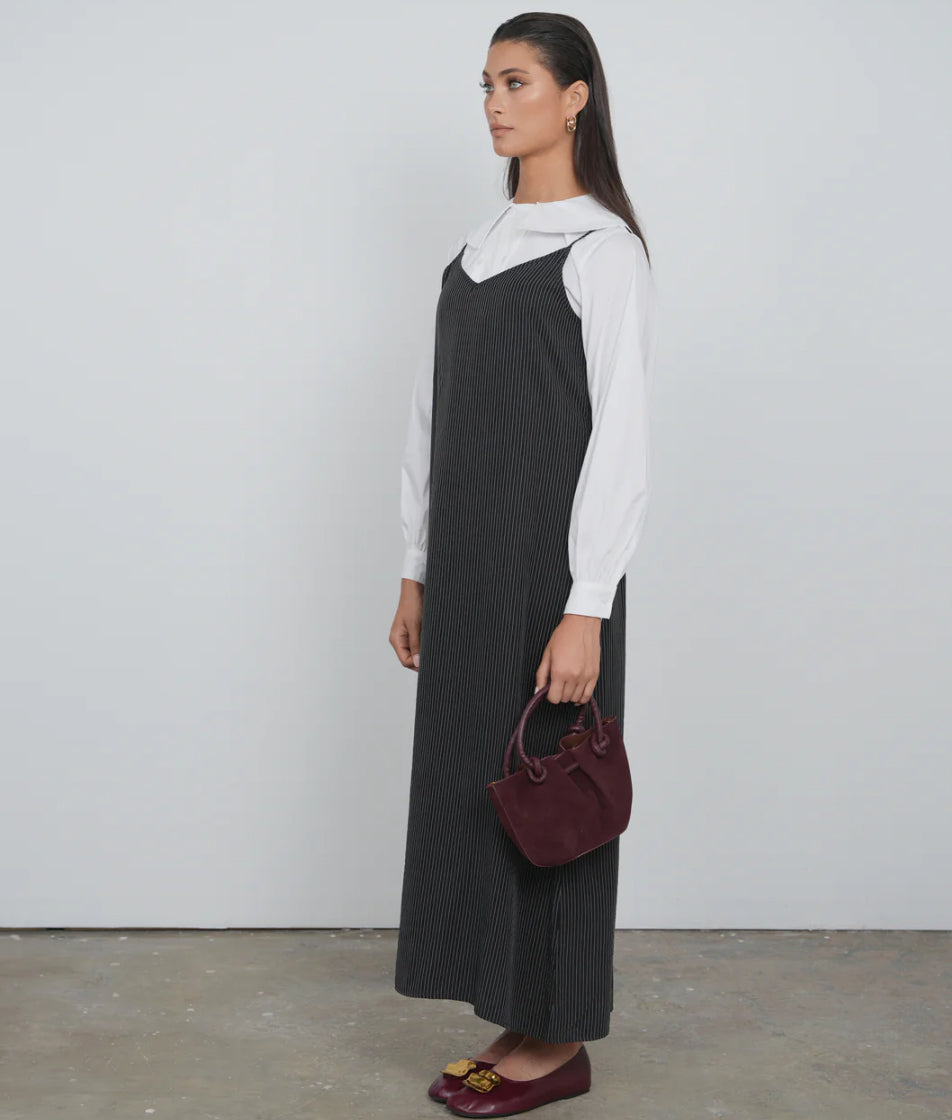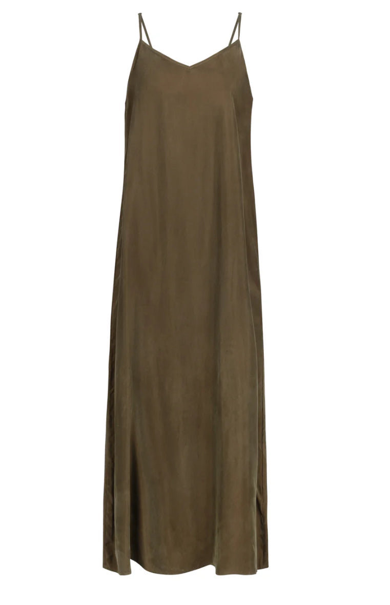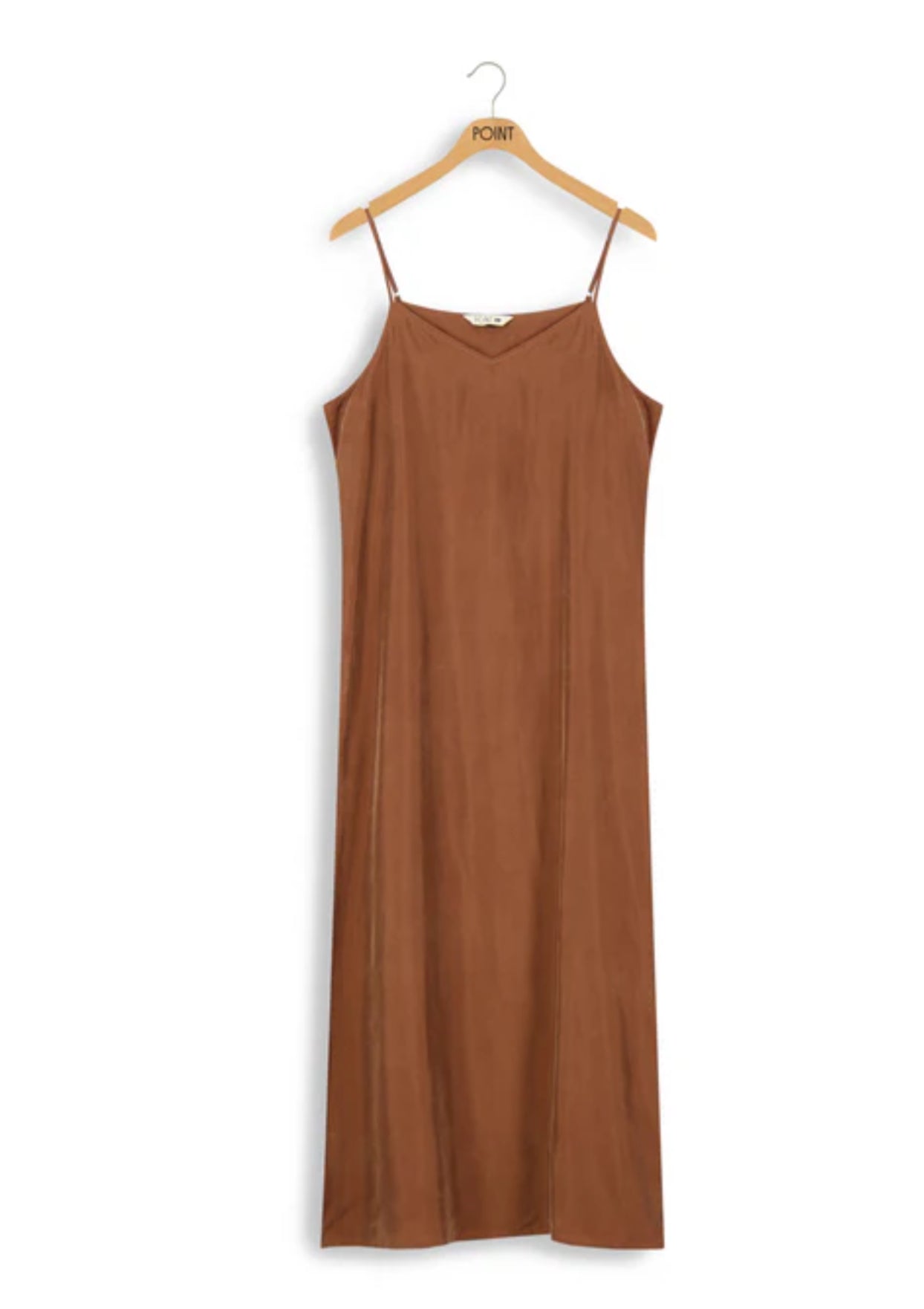 Elevate your wardrobe with the Point Brushed A-Line Maxi Jumper, crafted from soft suede with delicate spaghetti straps. Its flowing A-line silhouette offers effortless elegance and comfort, making it perfect for both day and evening occasions. The brushed texture adds subtle depth, highlighting its sophisticated design.