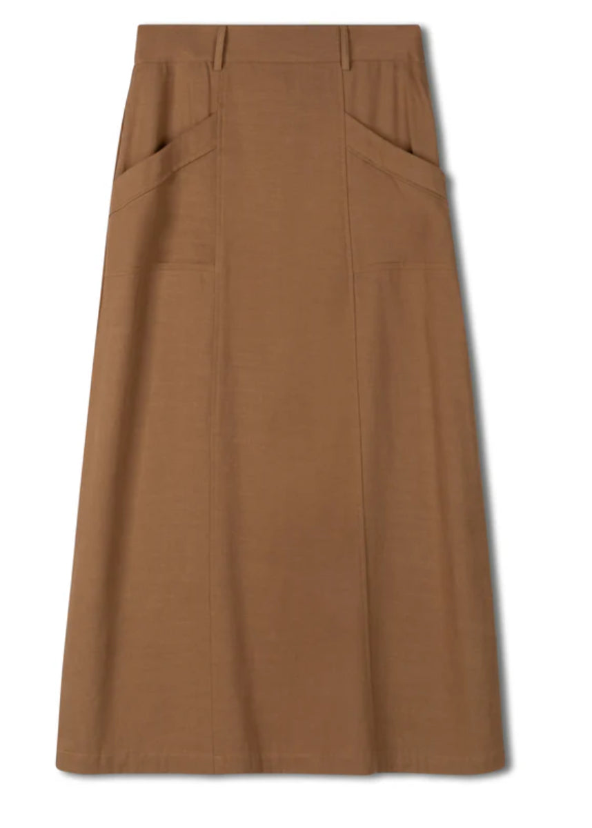 Crafted from durable twill fabric, this pocket skirt in the warm Fox Trot shade offers both structure and comfort. Featuring a discreet side zipper closure, it ensures a streamlined fit while providing easy wearability. Practical pockets enhance functionality without compromising the skirt's clean lines, making it an ideal choice for polished, everyday style.