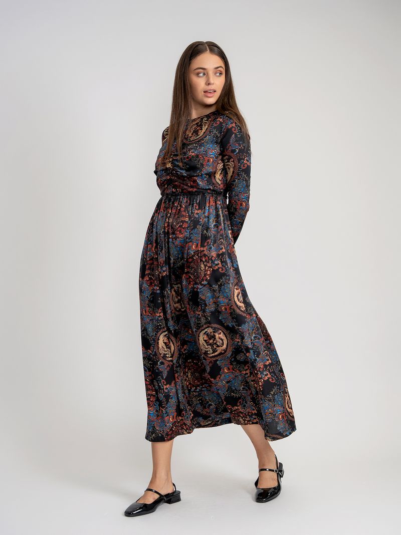 RUCHED PAISLEY DRESS