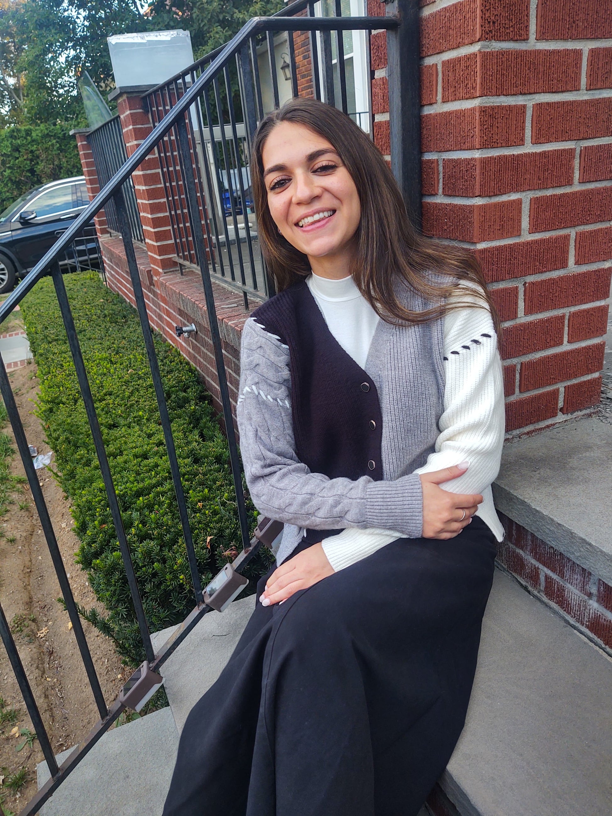 This sophisticated colorblocked cardigan features refined stitched details. adding subtle elegance to your wardrobe. Crafted for both style and comfort, it effortlessly complements any ensemble with a modern, polished touch.