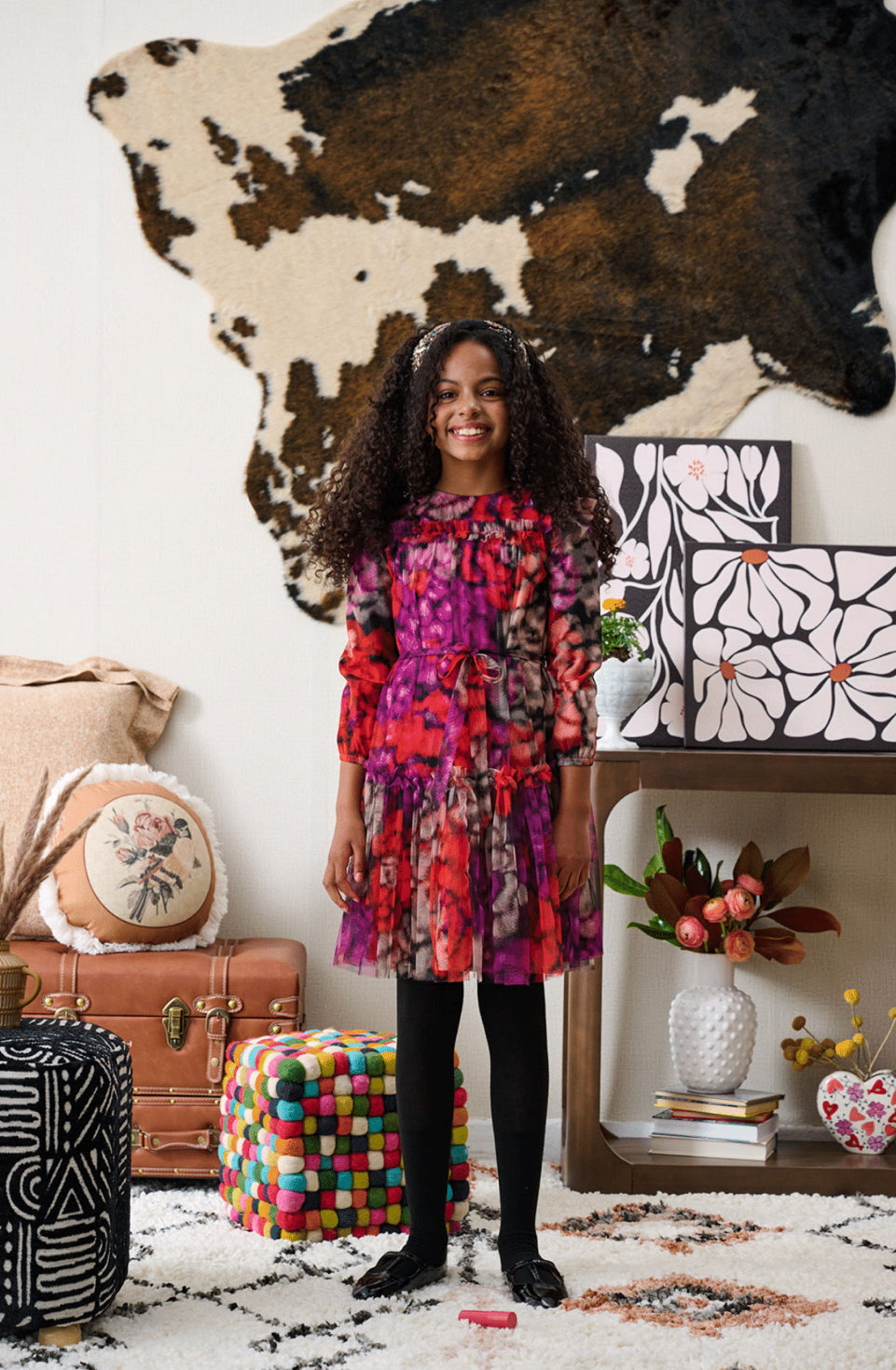 Elevate your wardrobe with the Sunburst Tulle Dress, featuring delicate tulle layered with vibrant orange and pink spot prints. The dress is complemented by a matching tulle belt that cinches the waist for a refined silhouette. Perfect for special occasions, its sophisticated design merges playful color with elegant texture, creating a standout look with effortless charm.