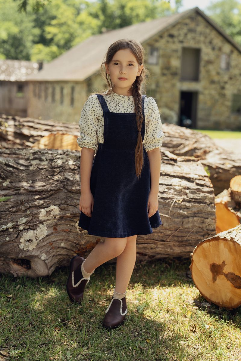 Elevate your wardrobe with THE JOLIE SET, featuring a woven floral button-down blouse detailed with delicate crepe pleats for refined texture. Paired with a navy blue velvet jumper, it offers an elastic waistband and adjustable straps for a tailored, comfortable fit. This sophisticated combination effortlessly blends classic elegance with modern versatility.