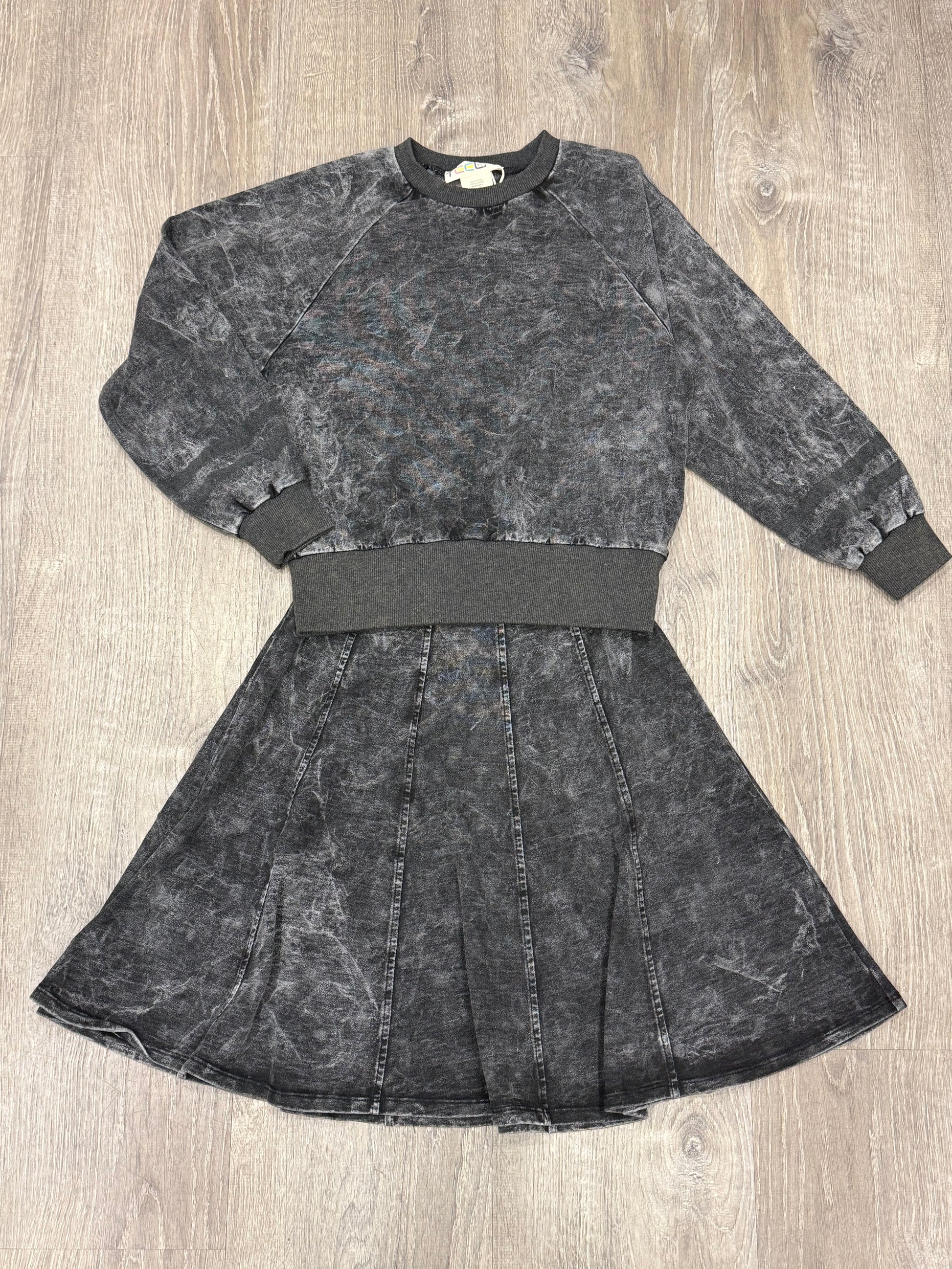 Get ready to mix comfort and style with THE MINERAL WASH SET! This playful duo features a soft mineral wash gray paneled short skirt paired with a cozy sweatshirt top. Perfect for lounging or casual outings, it offers a relaxed fit and a trendy look that keeps you feeling fun and fresh all day long.