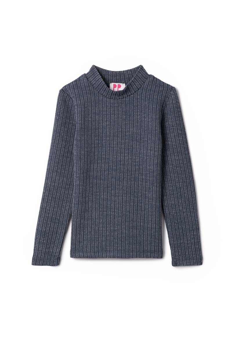This kids' denim washed waffle top features a cozy waffle texture and a stylish mock neck, perfect for layering or wearing on its own. Its soft, washed denim fabric ensures comfort and durability, making it ideal for active play and everyday wear. Designed to keep your child warm while looking effortlessly cool.